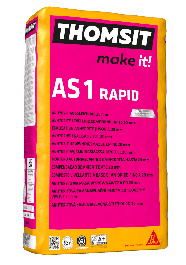 Sehr emissionsarmer Calciumsulfat-Bodenausgleich zum Erstellen normgerechter Untergründe für die Aufnahme von Bodenbelägen. THOMSIT AS 1 RAPID ist einsetzbar auf geeigneten: